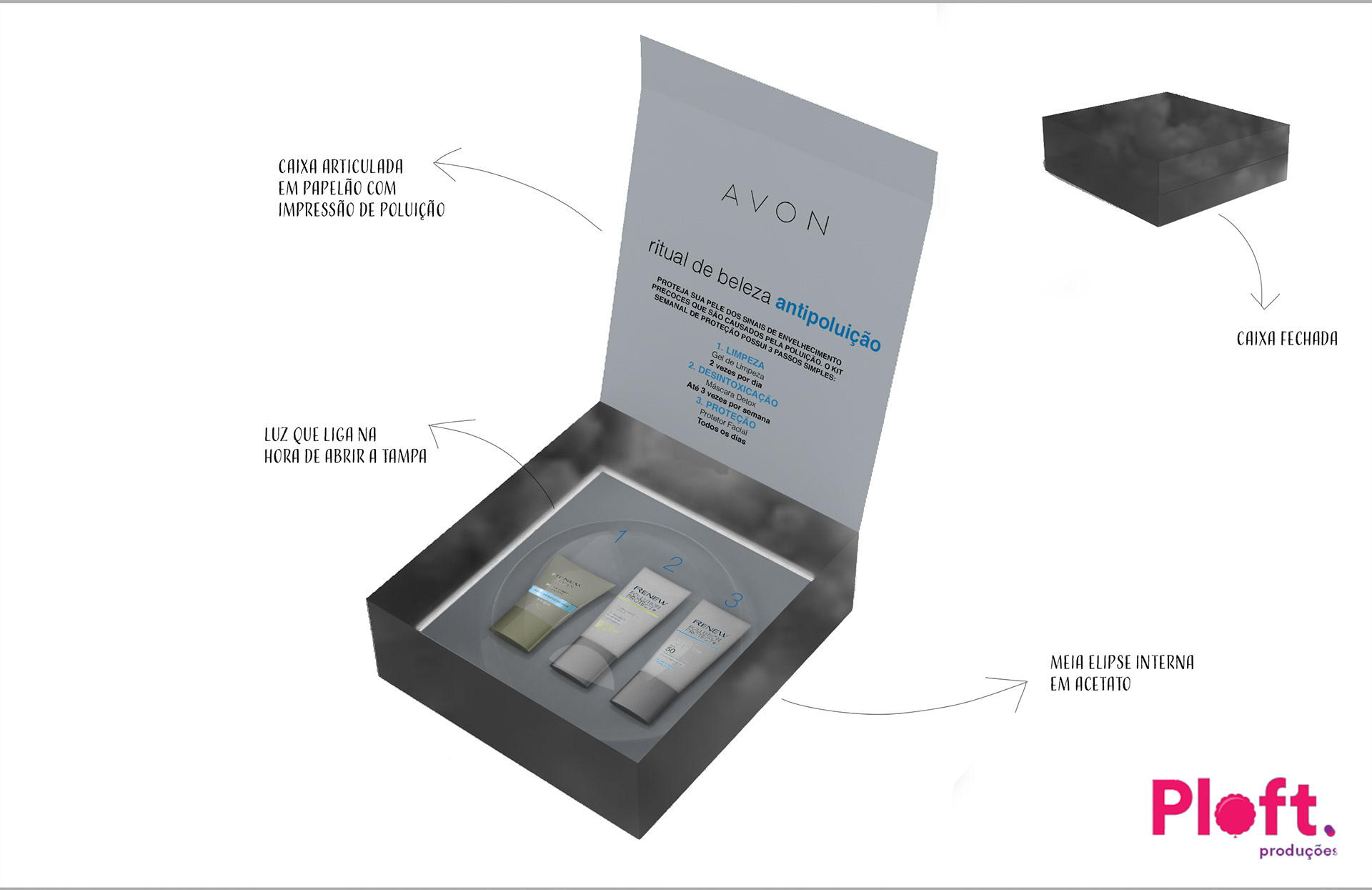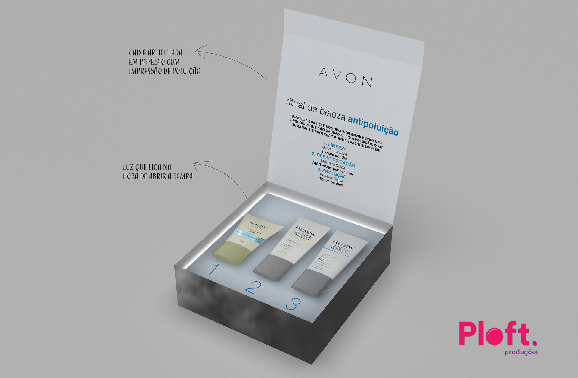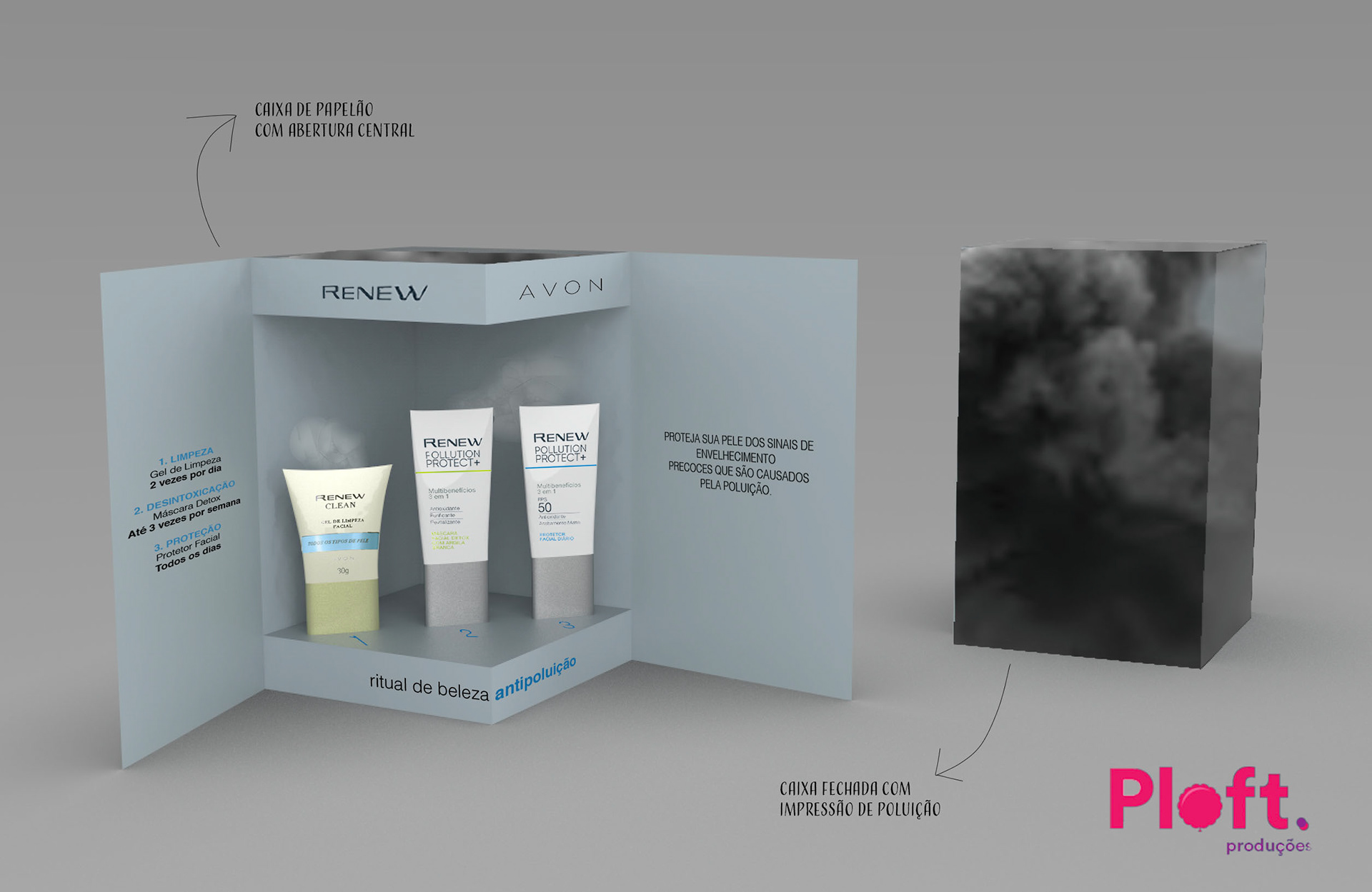 The briefing was to come up with a few options of boxes to present to influencers and celebrities their new line of products that protect the skin against the effects of pollution. 3D- Rhinocerous Render- Keyshot Details- Photoshop